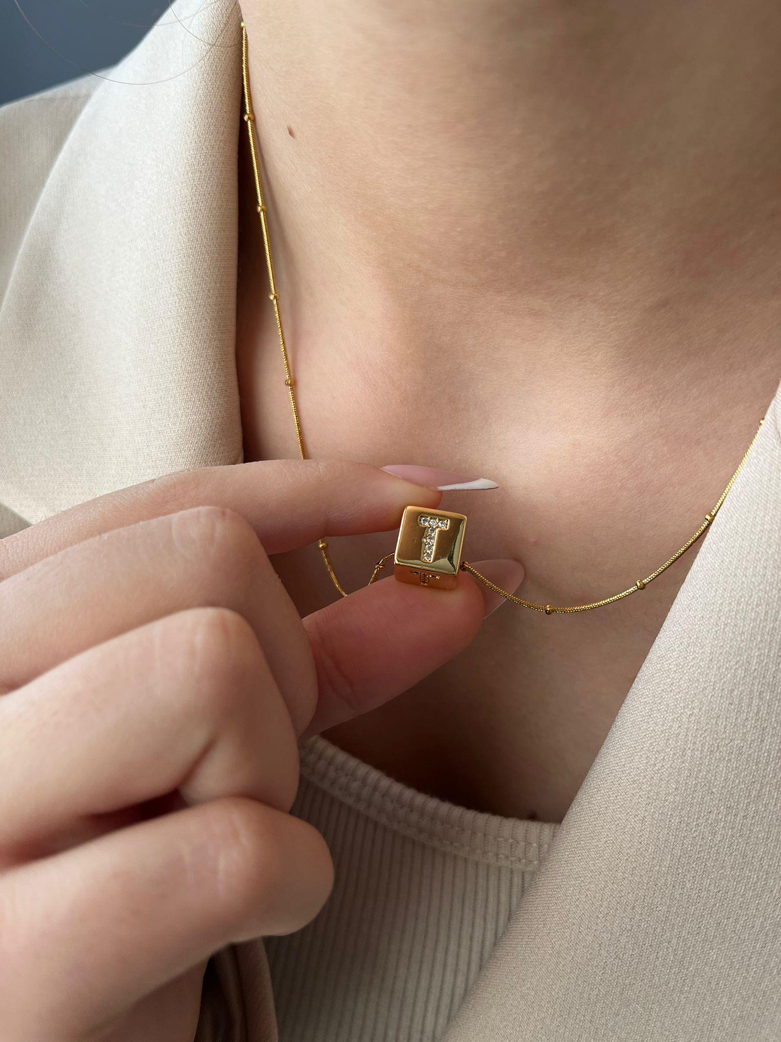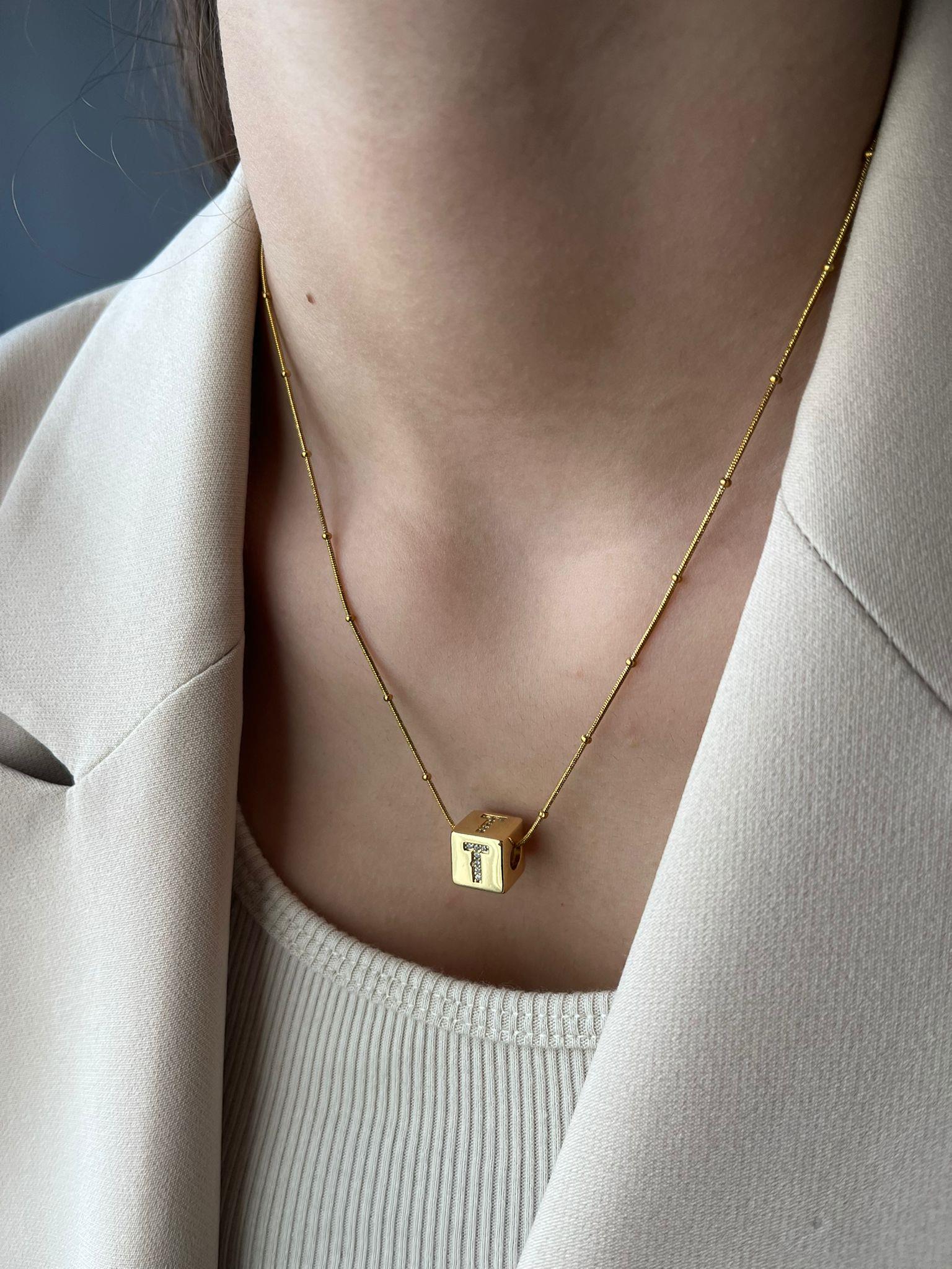 Çelik Küp Harf Kolye