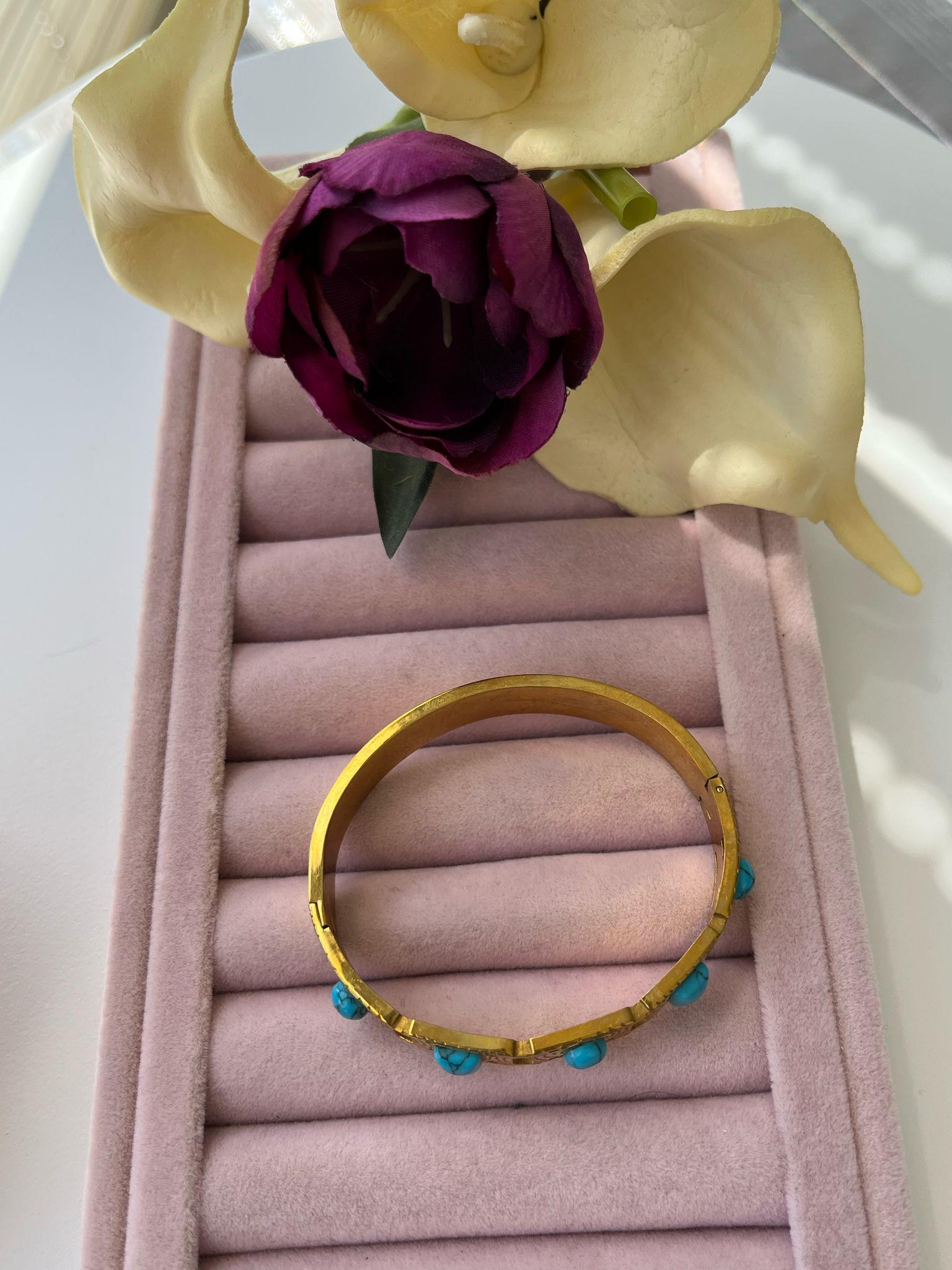 Çelik Turkuaz Taşlı Kelepçe Bileklik