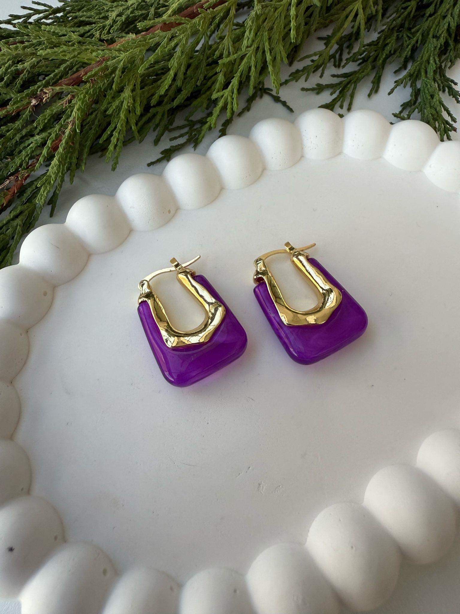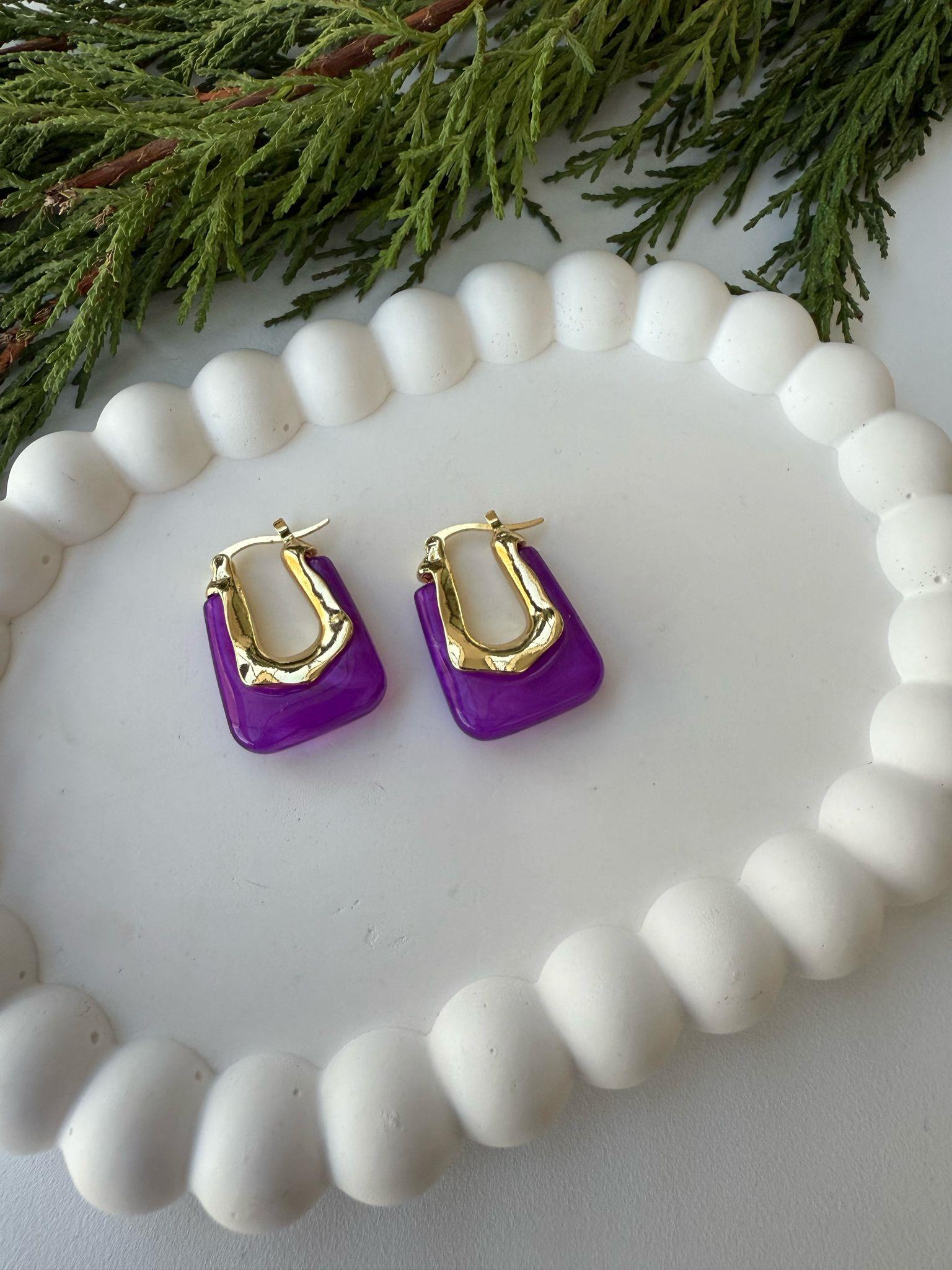 Mor Reçine Küpe