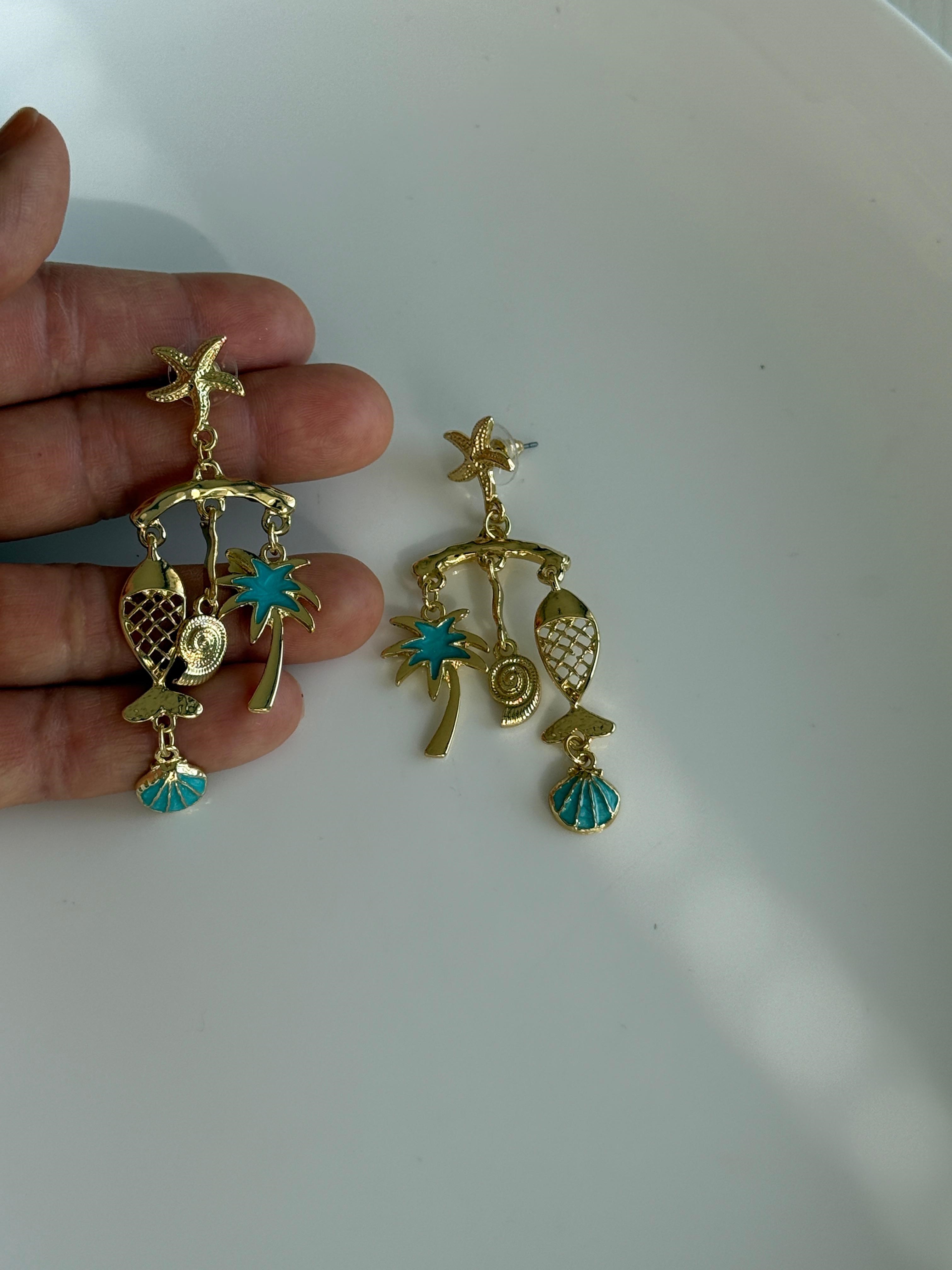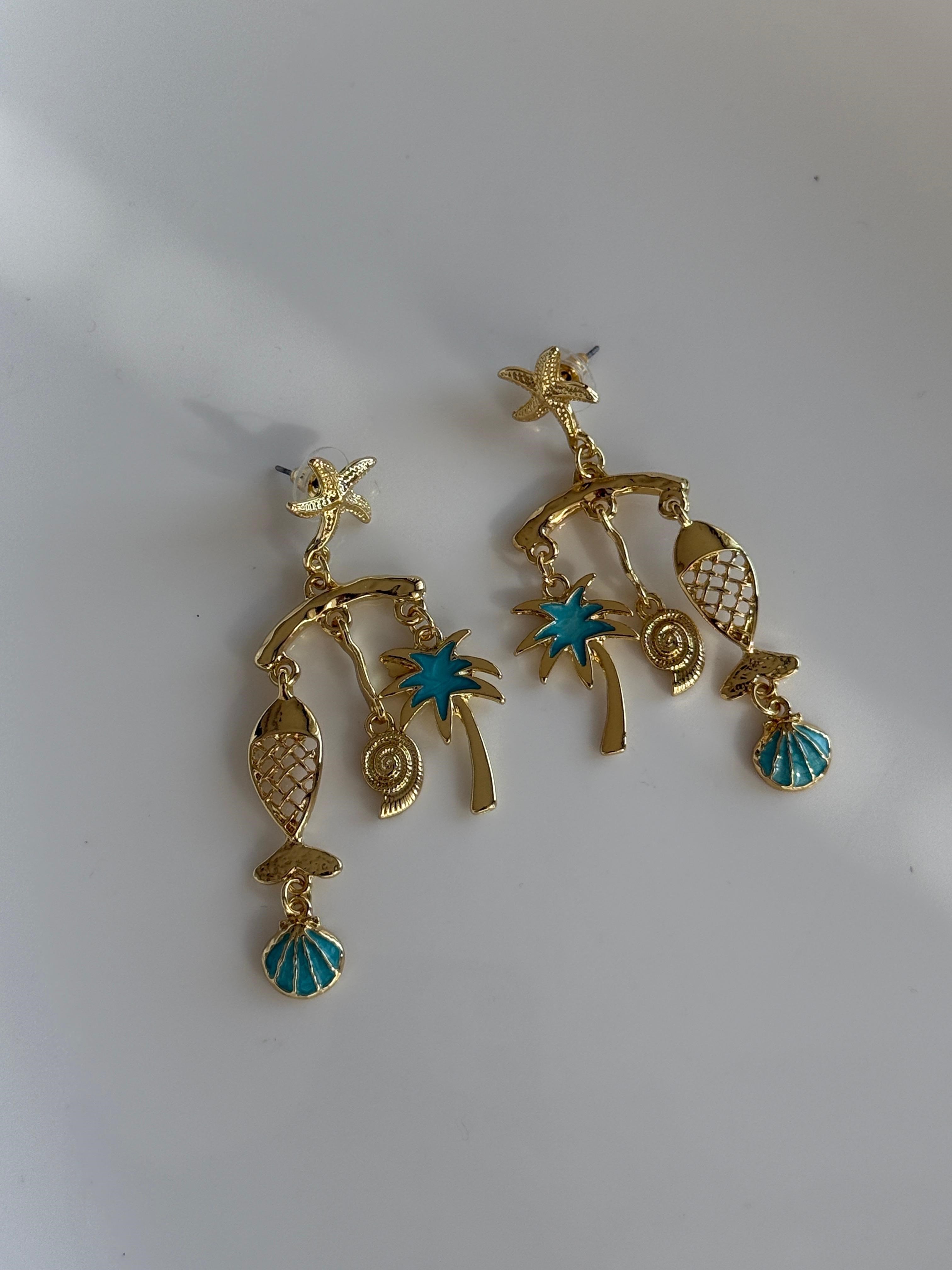 Özel Seri Mavi Palmiyeli Küpe