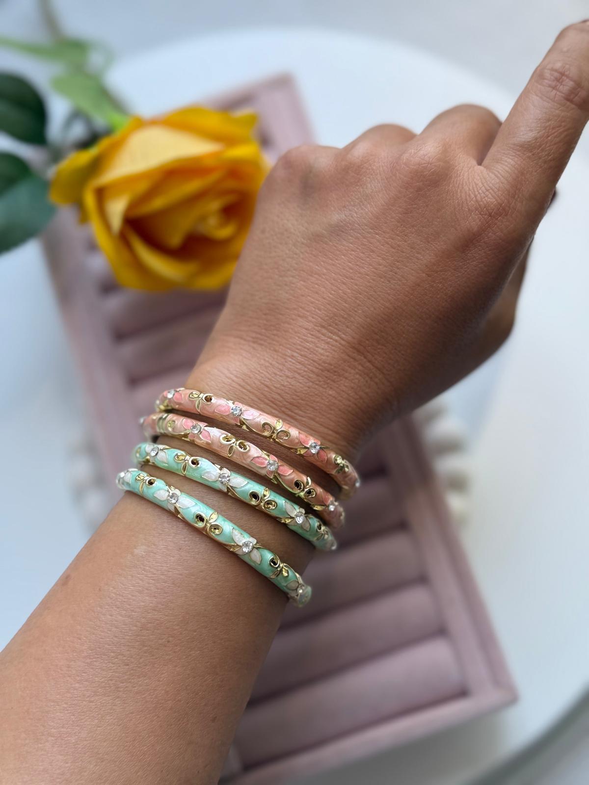 Özel Seri Mineli Çiçek Figürlü Nokta Taş Detay Kelepçe Bileklik -Pembe