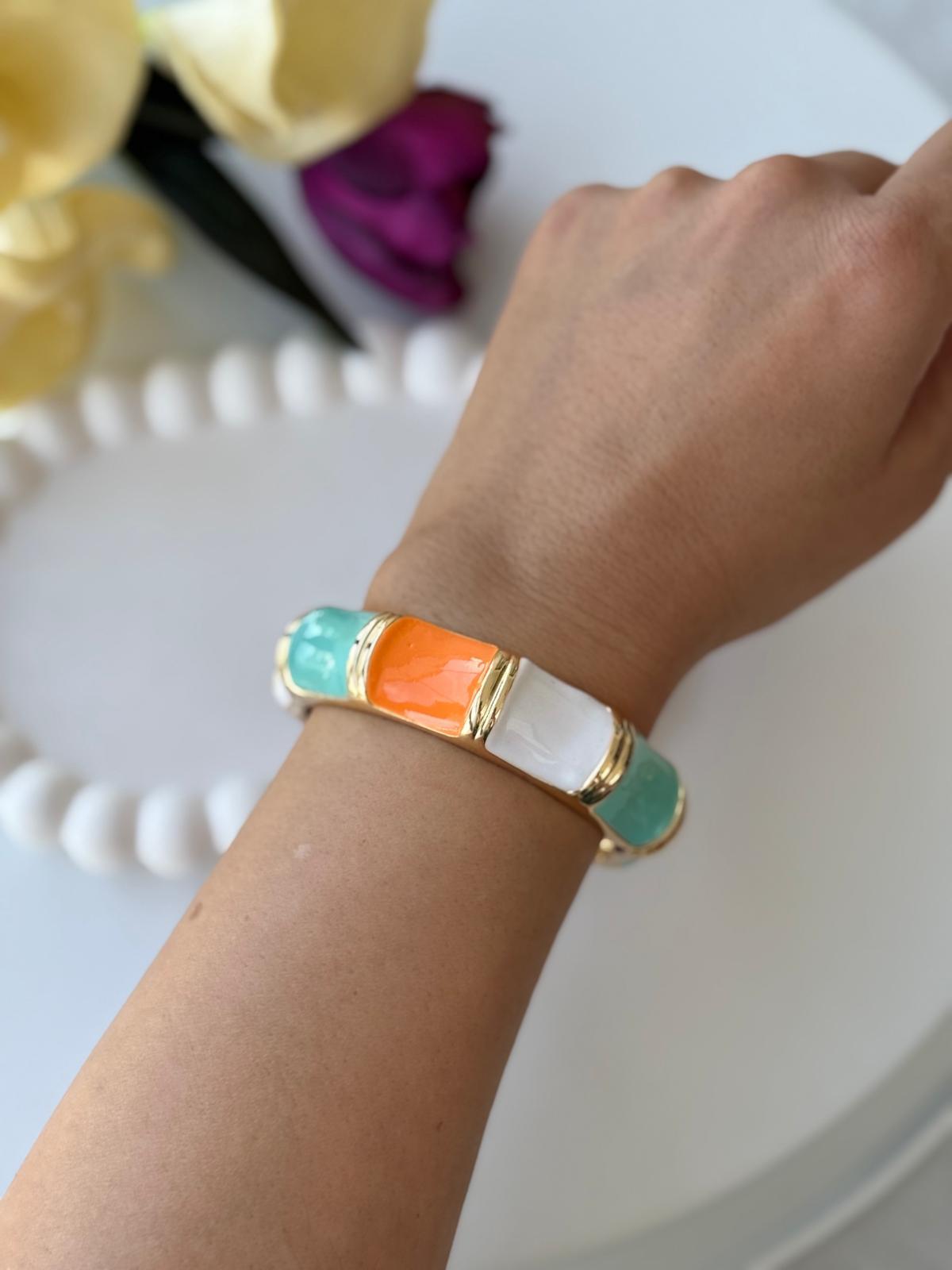 Özel Seri Turuncu Beyaz Yeşil Dore Kalın Bileklik