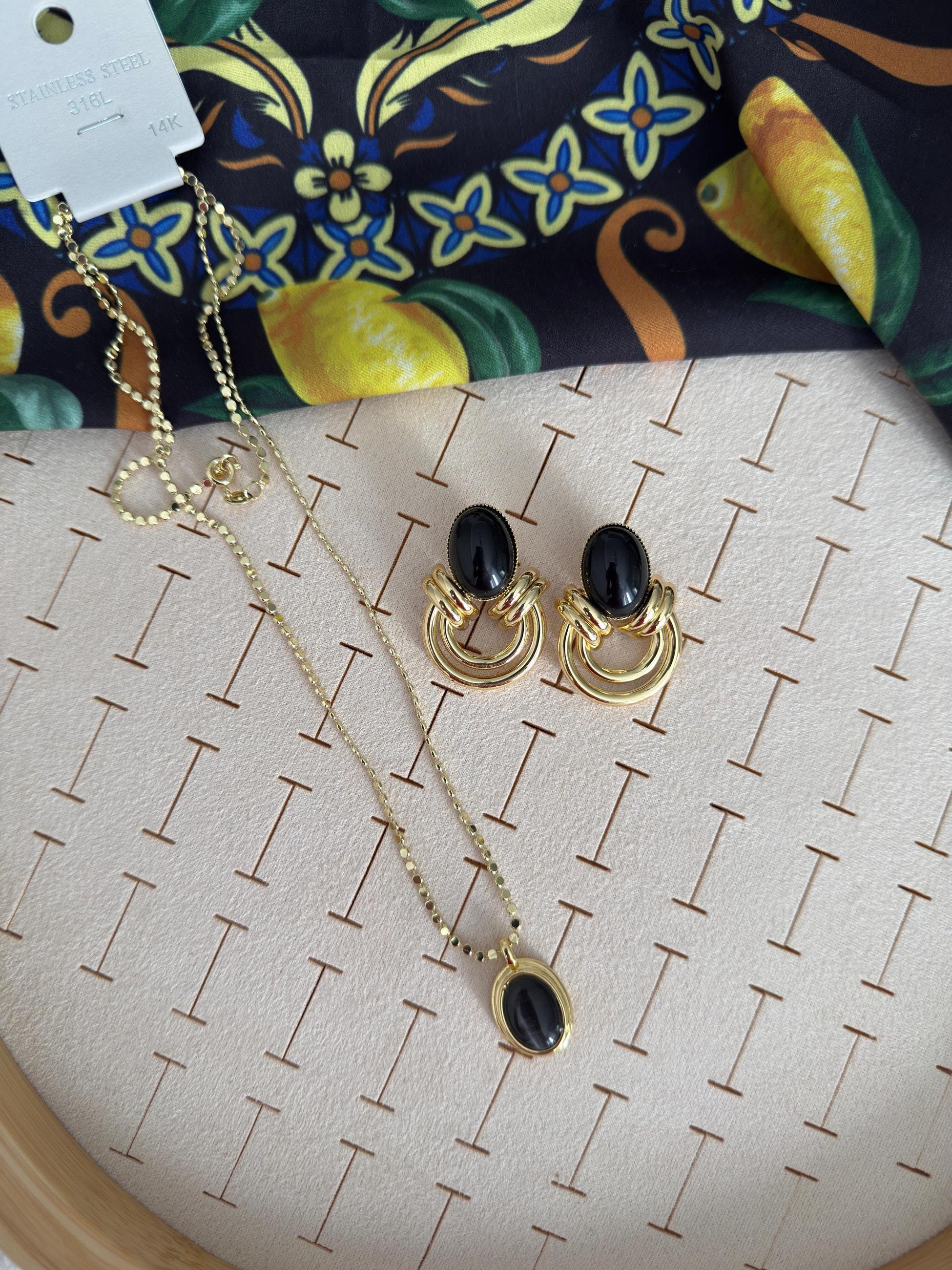 Siyah Çelik Kolye Vintage Küpe Kombini