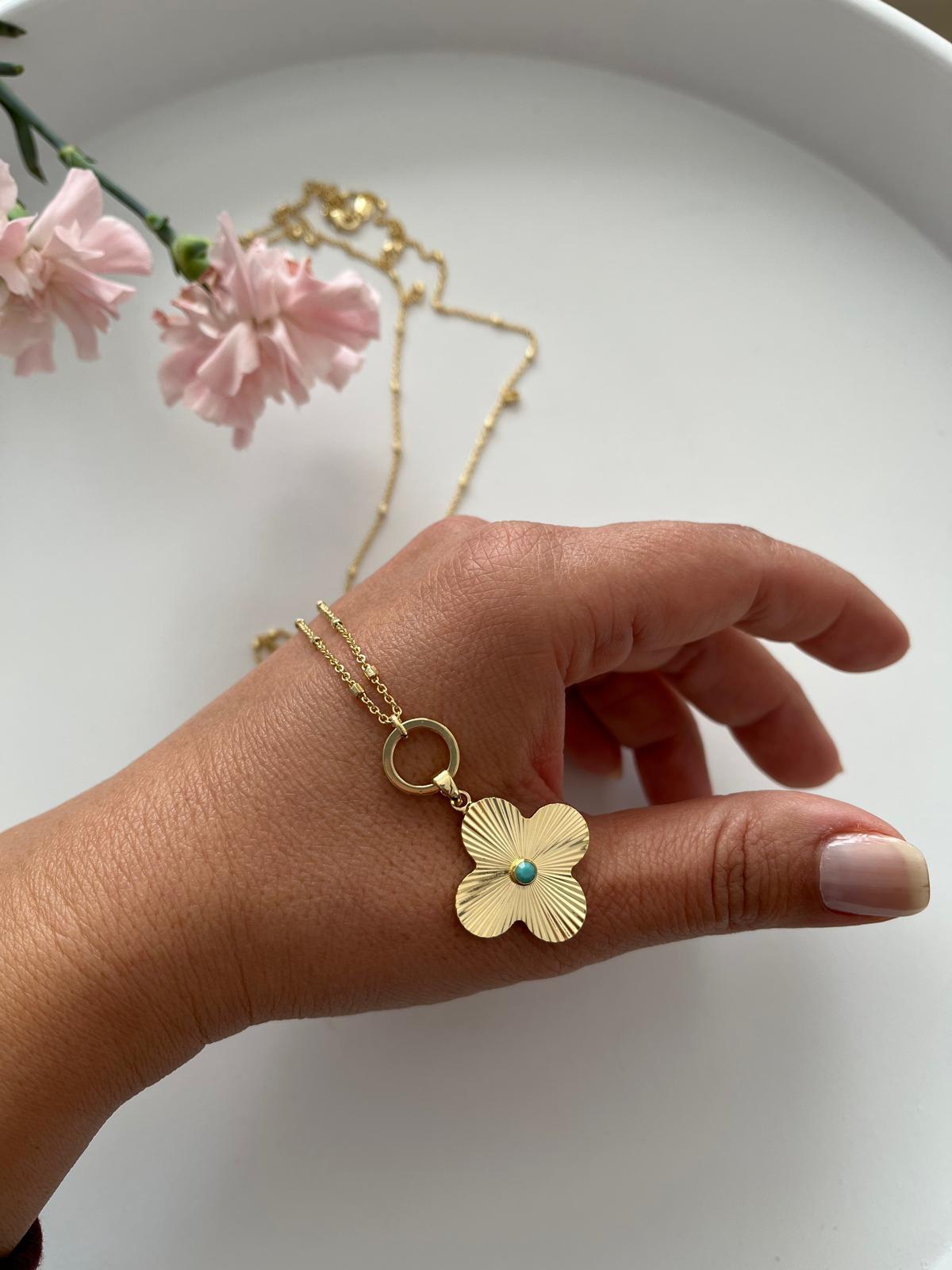 Vip 14k Mavi Boncuklu Yonca Kolye