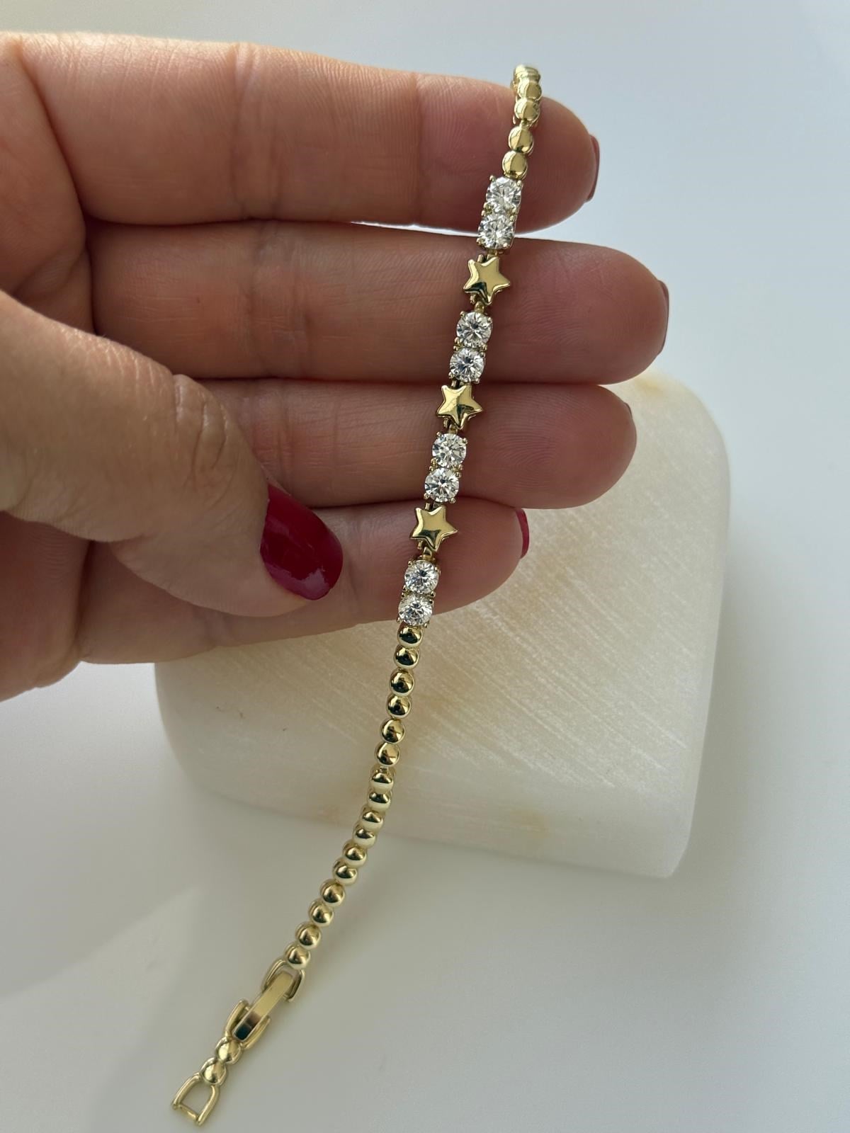 Vip 14k Zirkon Taşlı Üç Sıralı Yıldız Bileklik